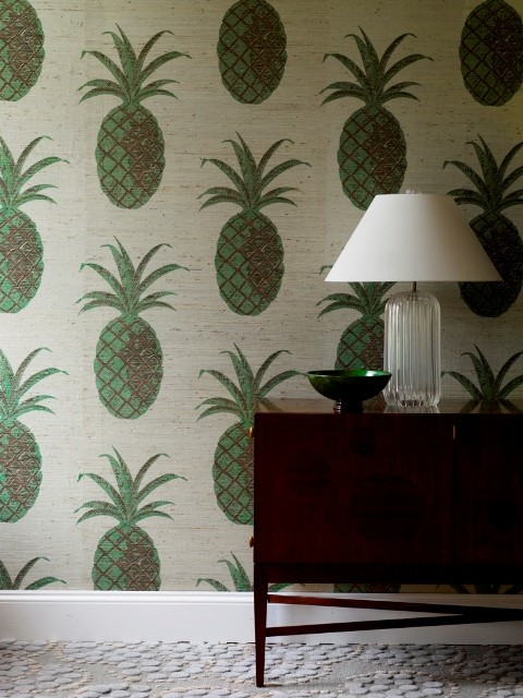 Pineapple print wallpaper adds whimsy and color to any room. Imagine how it could spruce up a powder room!
